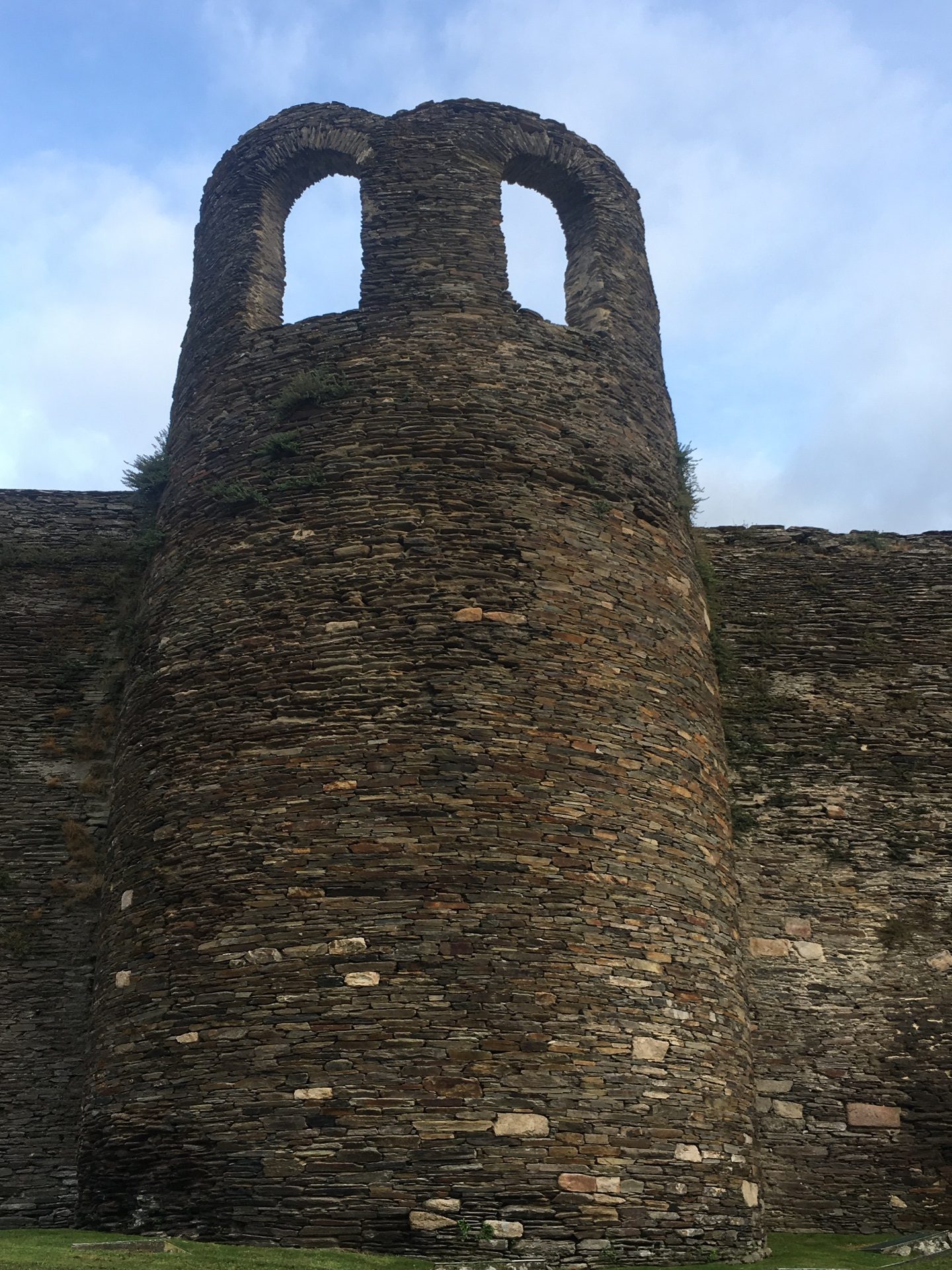 From the Camino: Lugo is so very impressive. Its walls were constructed by the Romans in the third century, and they are fairly intact to this day, though there are some places that you can see where they have been repaired.