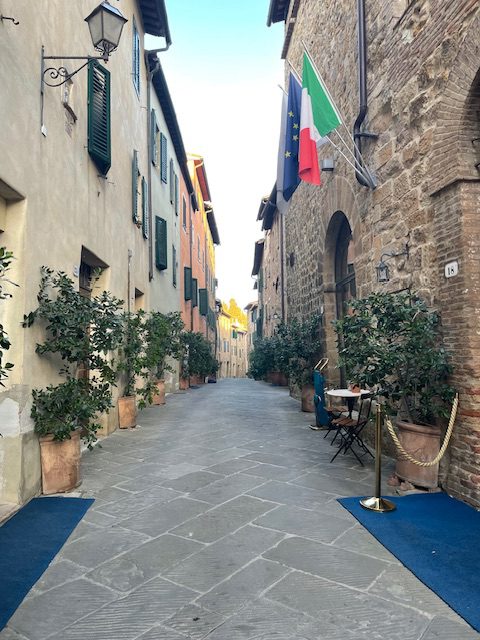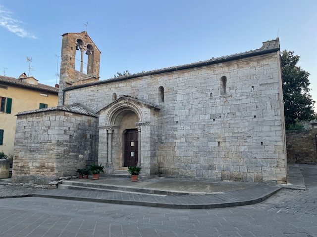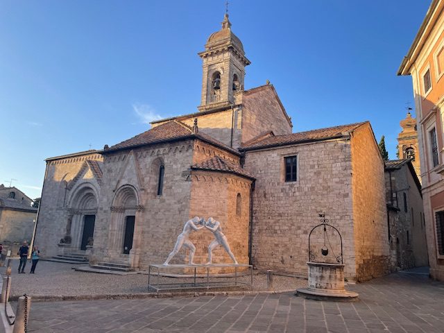 The last bit up into the utterly charming walled town of San Quirico D’Orcia was a grueling uphill. But the town, with its three ancient churches, one with a beautiful Della Robbia Madonna, is a gem.